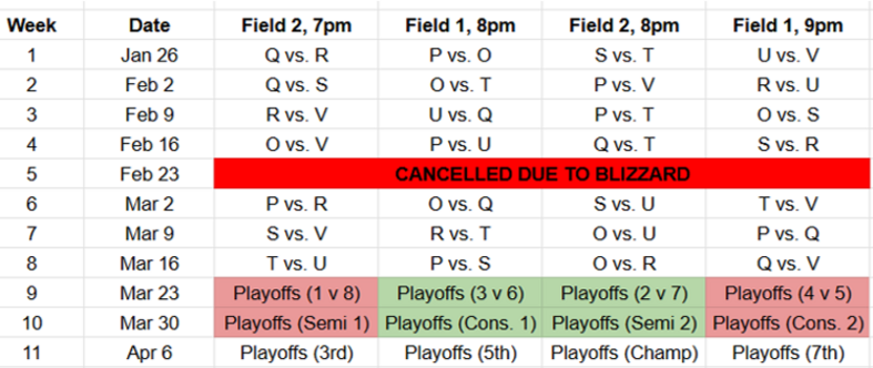 WINTER LEAGUE INFO - WARWICK